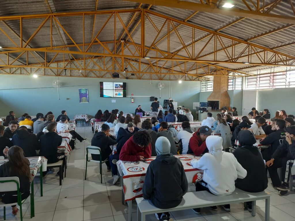 O encontro contou com a presença de alguns professores e de cerca de 320 estudantes (1°, 2° e 3° anos do ensino médio), os quais apresentaram dúvidas sobre as formas de ingresso, tempo de duração dos cursos e sobretudo as polÃticas estudantis voltadas para assegurar a permanência na universidade.